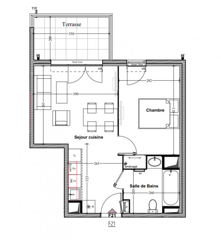 185 999€ Appt. T2 40.23m2 0-RDC