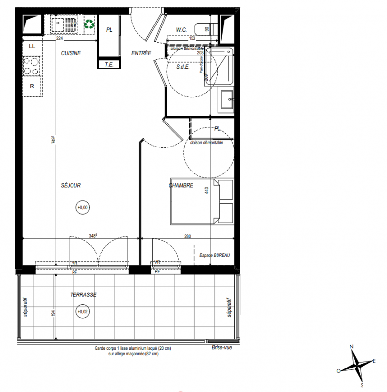 165 700€ Appt. T2 44.84m2 0-RDC