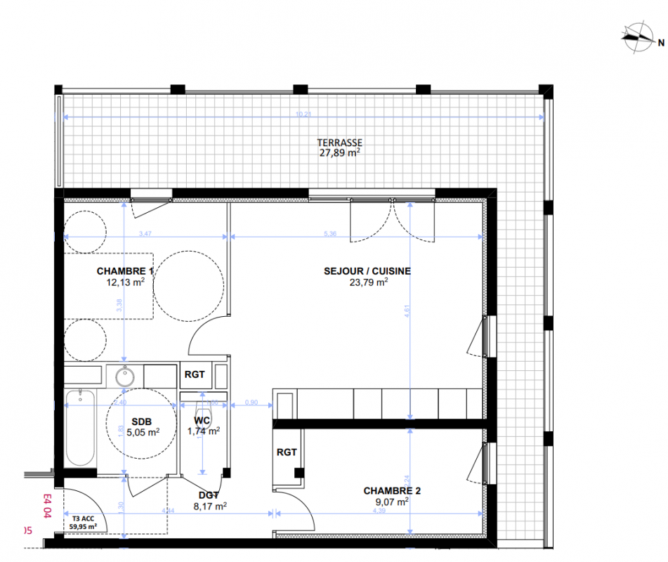 278 923€ Appt. T3 65.78m2 4ème